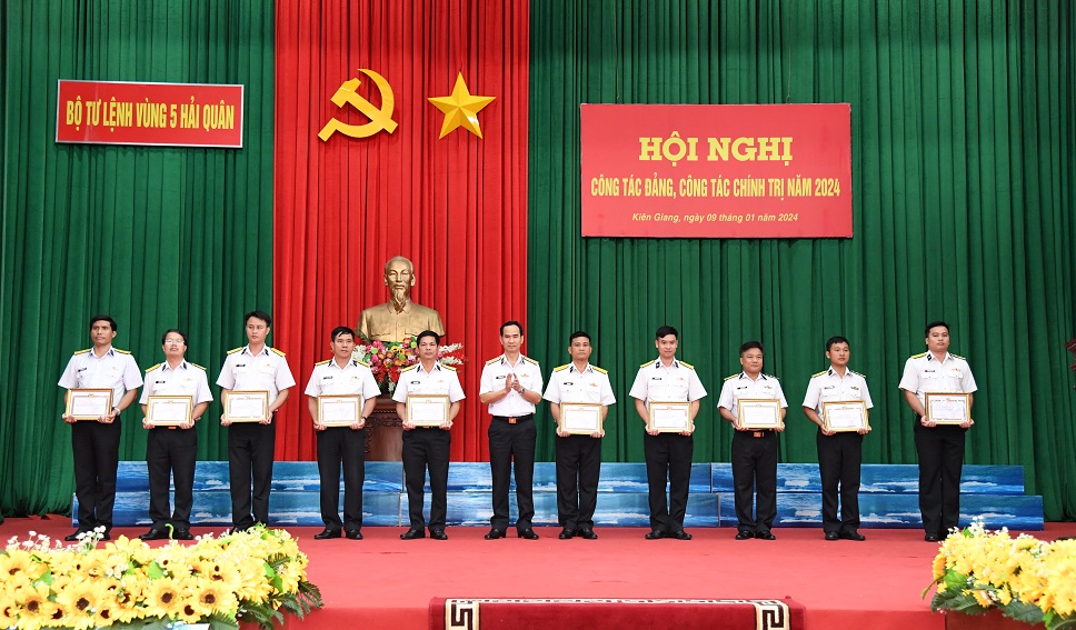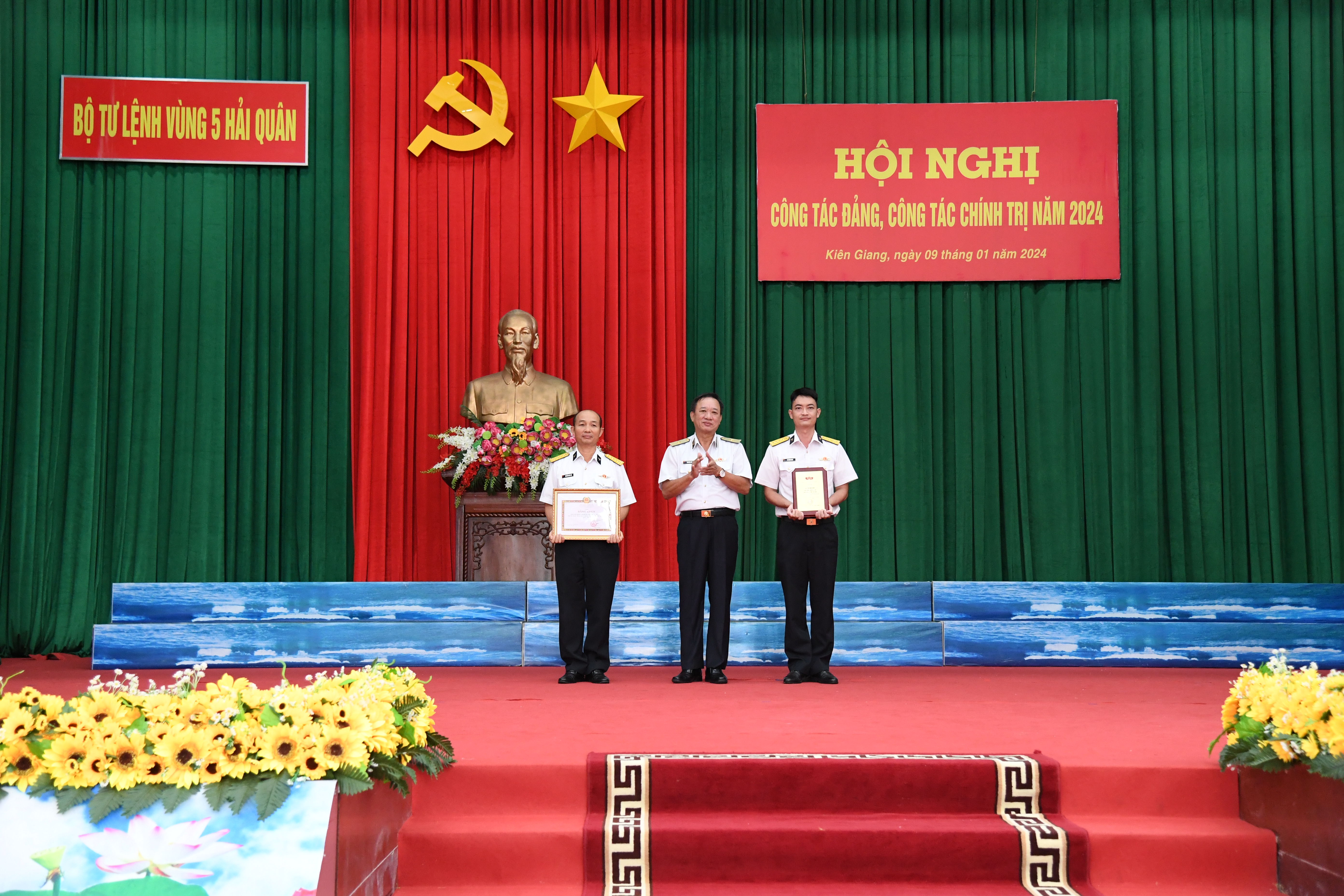 Tại hội nghị, thừa ủy quyền của Ban Thường vụ Đảng ủy Quân chủng, Vùng 5 đã trao Bằng khen cho 1 tổ chức đảng hoàn thành xuất sắc nhiệm vụ tiêu biểu 5 năm liền (2019 – 2023); trao danh hiệu tiêu biểu xuất sắc nhất Quân chủng năm 2023 cho 2 cá nhân.
