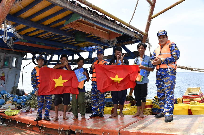 Cán bộ, chiến sĩ đơn vị còn thông tin, tuyên truyền cho ngư dân về các hành vi bị cấm khi khai thác hải sản trên biển; quy định xử phạt vi phạm hành chính trong lĩnh vực thủy sản; các vụ việc ngư dân bị xử lý do vi phạm pháp luật Việt Nam, pháp luật quốc tế và các nước trong khu vực...
