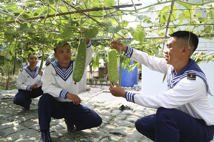 Chiến sĩ trên đảo Đá Thị chăm sóc cây cảnh