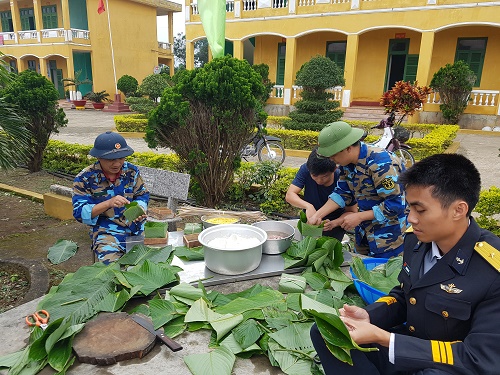 Thiếu úy QNCN Trần Ngọc Hiếu, quê ở xã Thái Bình, huyện Yên Sơn, tỉnh Tuyên Quang (sinh năm 1996) là quân nhân trẻ nhất tại đơn vị, mới ra đảo công tác từ tháng 11-2018 vừa lau lá dong vừa trải lòng: “Lần đầu ăn Tết nơi hải đảo em đoán rằng chắc buồn lắm. Ấy vậy mà mấy hôm nay đơn vị chộn rộn chuẩn bị Tết, mở nhạc xuân, người em lúc nào cũng lâng lâng. Anh em, đồng chí lúc nào cũng tình cảm, tít tít... Xa nhà nhưng xuân này ấm áp lạ!”.