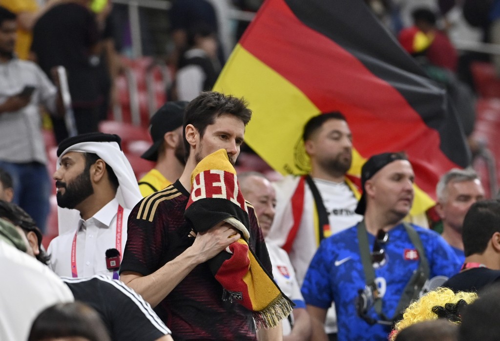 Cổ động viên Đức buồn bã, thất vọng trên khán đài sau khi đội nhà bị loại ở World Cup hôm 1/12. Ảnh: AFP