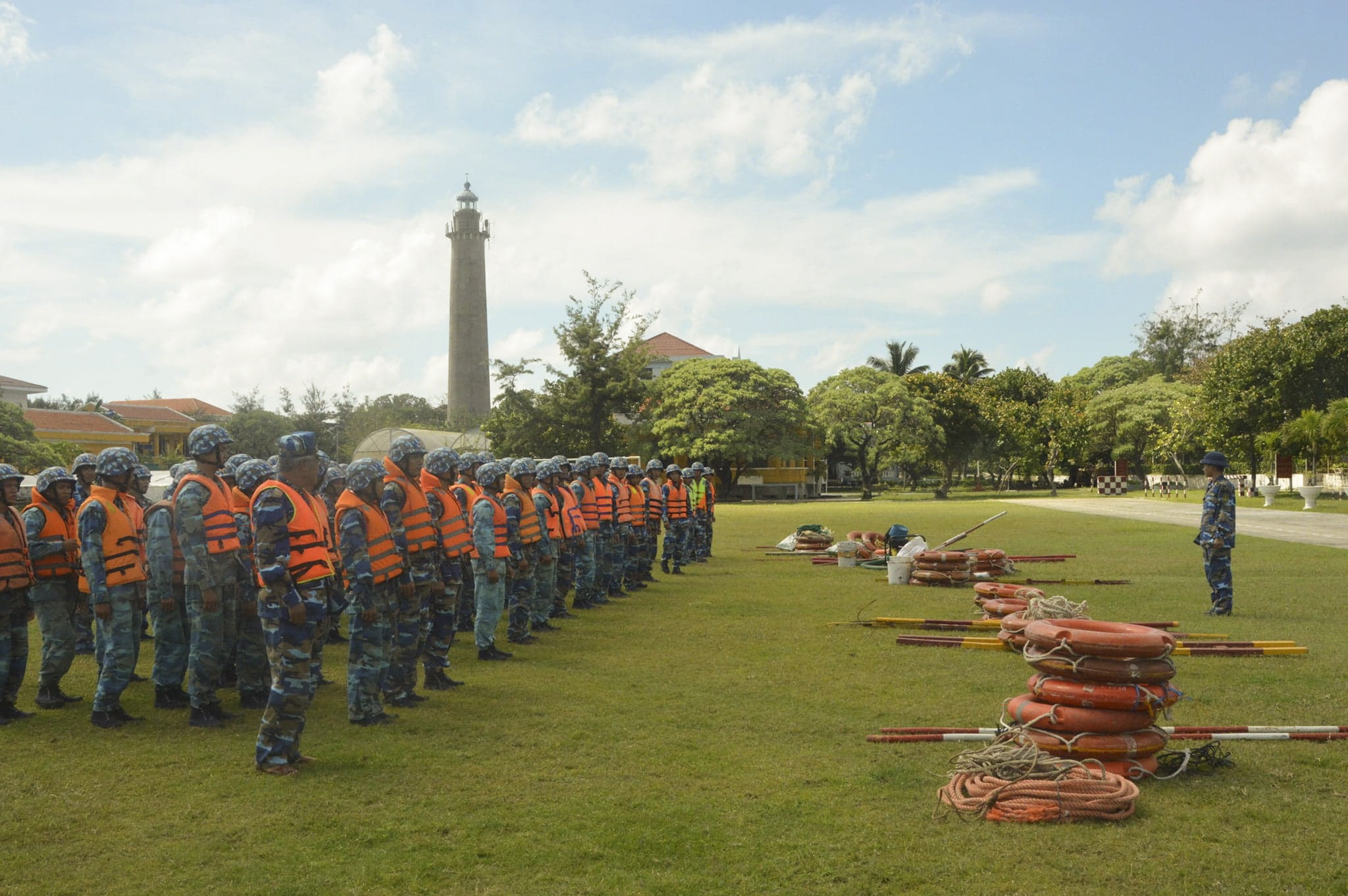 Cán bộ, chiến sĩ xã đảo đã chủ động chằng buộc nhà cửa, đưa bao cát lên gia cố mái tôn, cắt tỉa những cành cây to, chống đỡ cho cây xanh; gia cố hệ thống năng lượng sạch, di chuyển các trang bị về nơi an toàn.