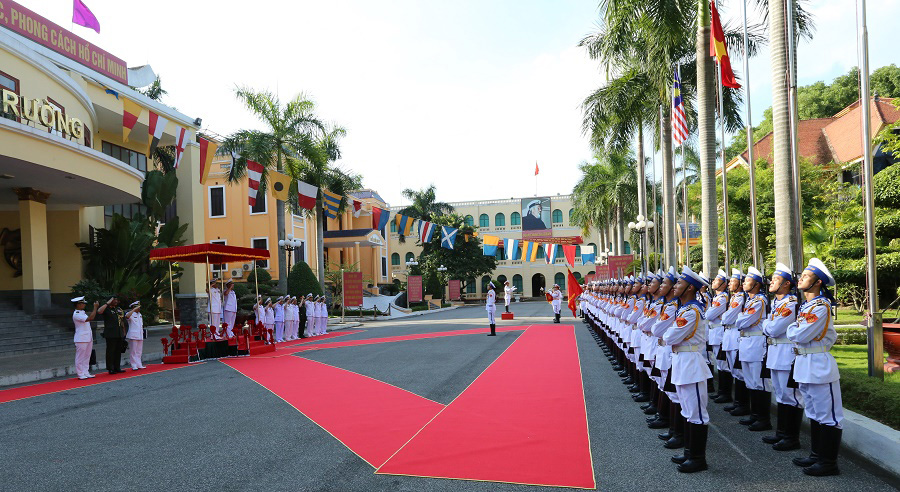 Đội danh dự Hải quân nhân dân Việt Nam phục vụ đón tiếp khách nước ngoài thăm Bộ Tư lệnh Hải quân. Ảnh: Khánh Hưng