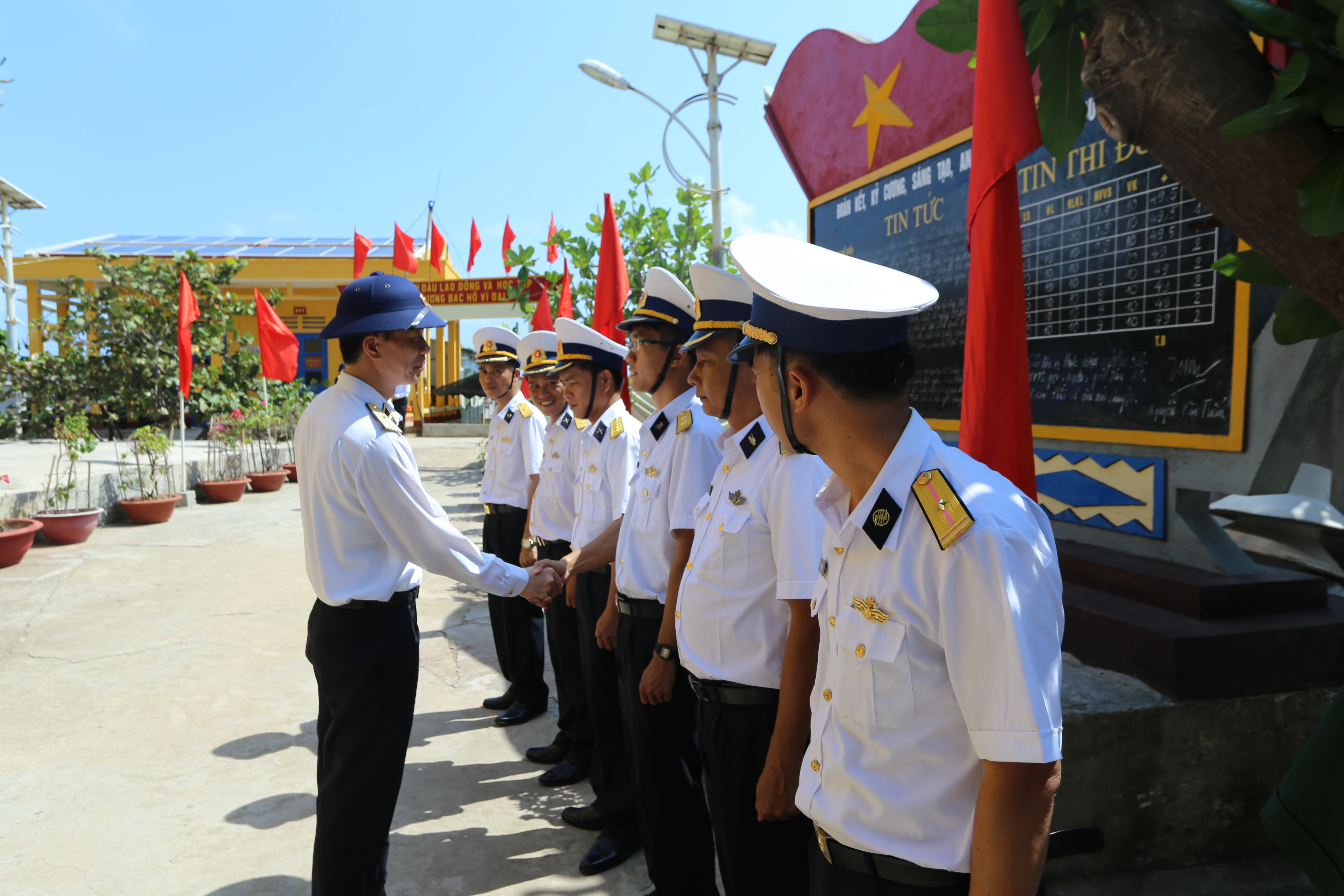 Chuẩn Đô đốc Nguyễn Trọng Bình thăm và kiểm tra đảo An Bang, tháng 4-2018. Ảnh: Khánh Hưng