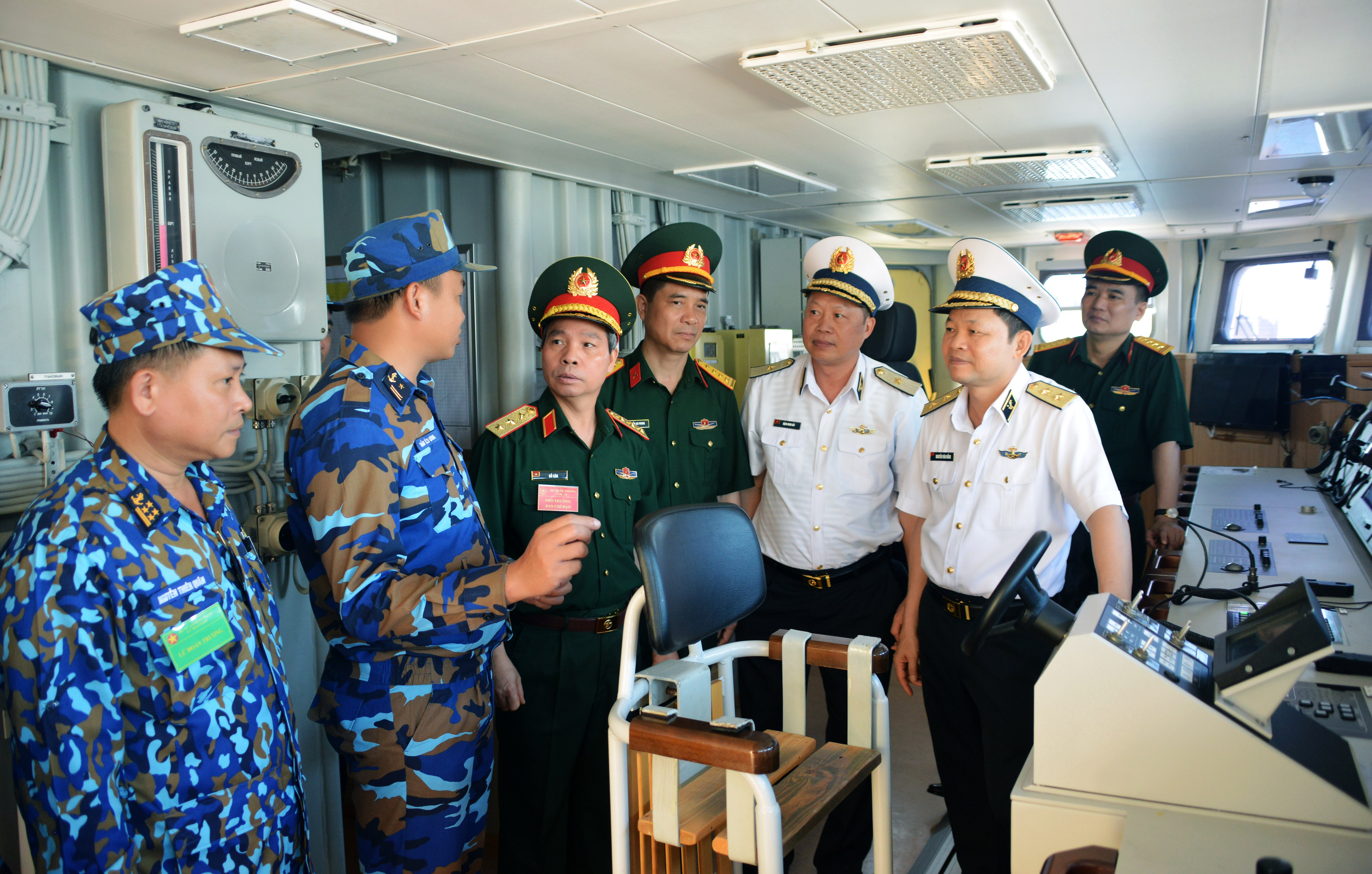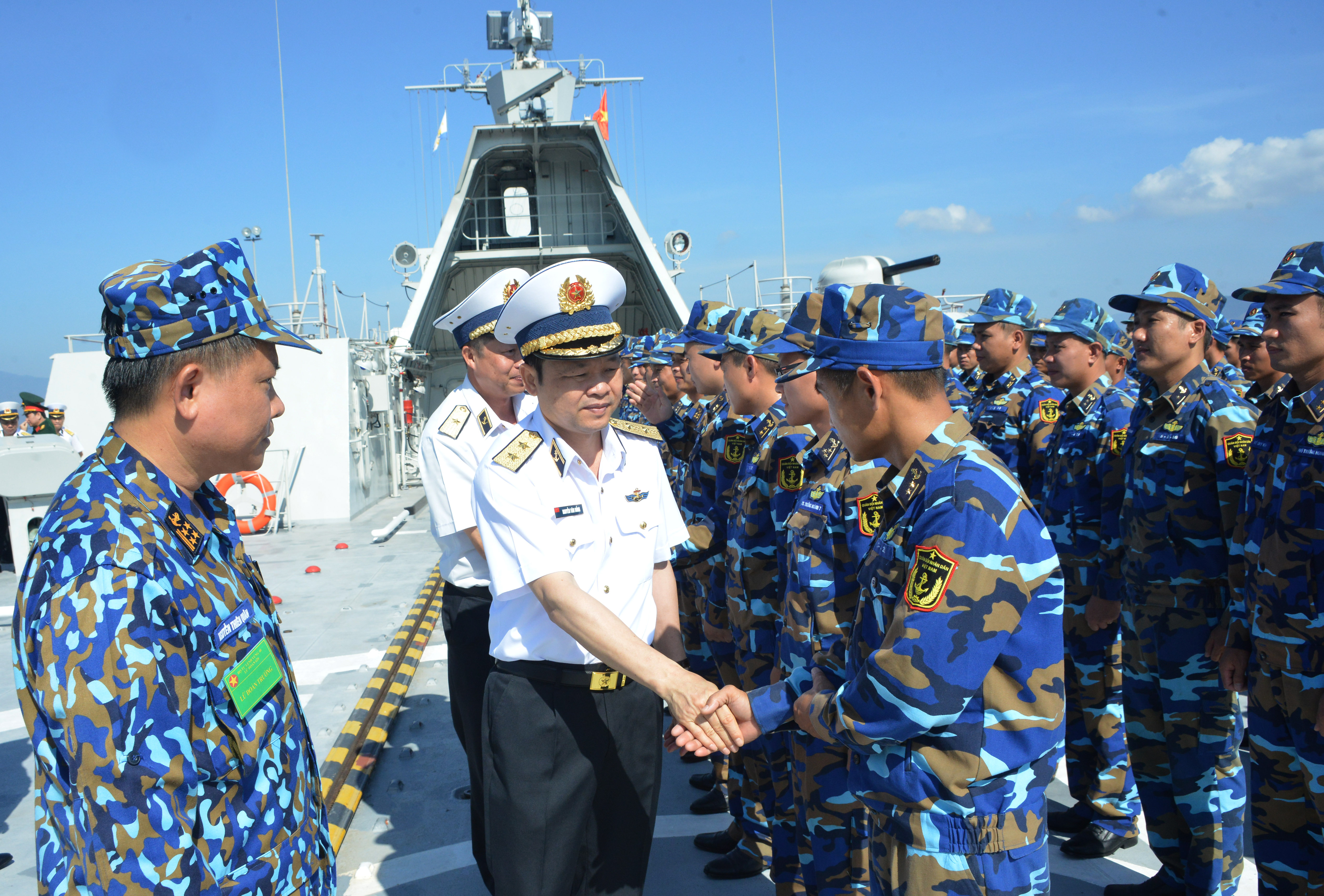 Trung tướng Nguyễn Văn Bổng, Chính ủy Hải quân thăm, kiểm tra Tàu 015 Trần Hưng Đạo. Ảnh: Trọng Thiết