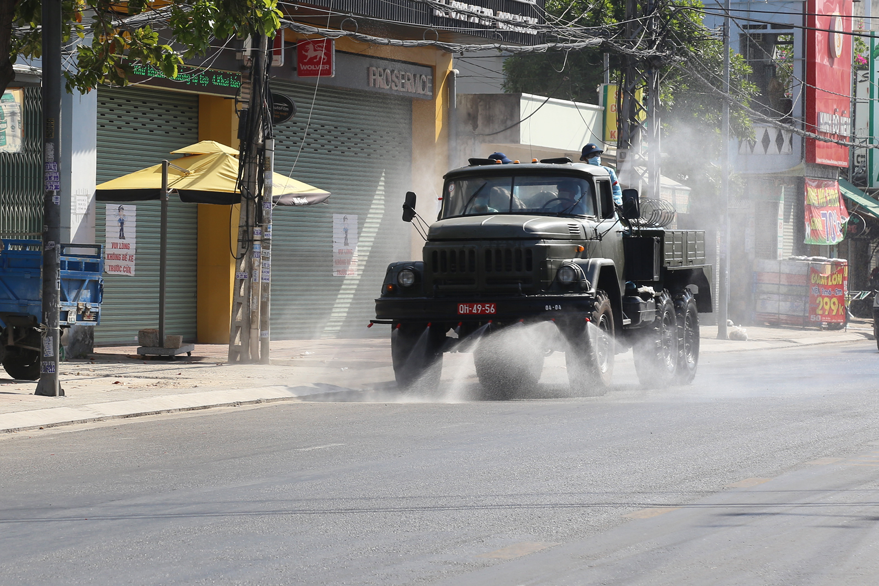 Bộ đội Vùng 4 tham gia phun khử khuẩn tại thành phố Nha Trang.Ảnh: Đức Thu
