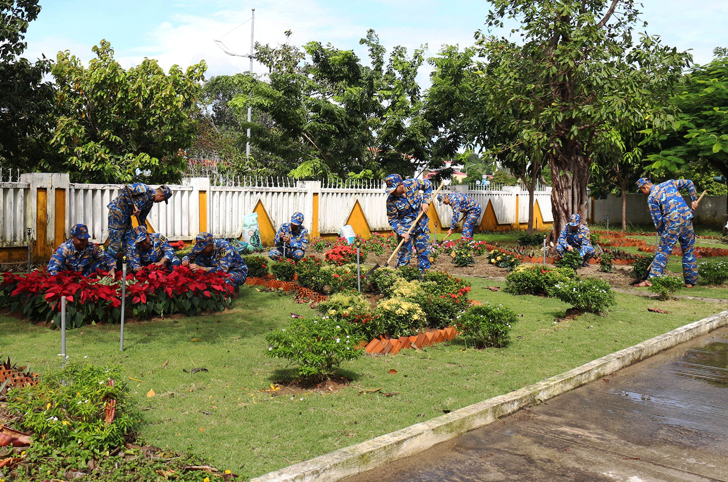 Các bộ, chiến sĩ phát huy nội lực, xây dựng cảnh quan môi trường đơn vị. Ảnh: Lê Ngọc