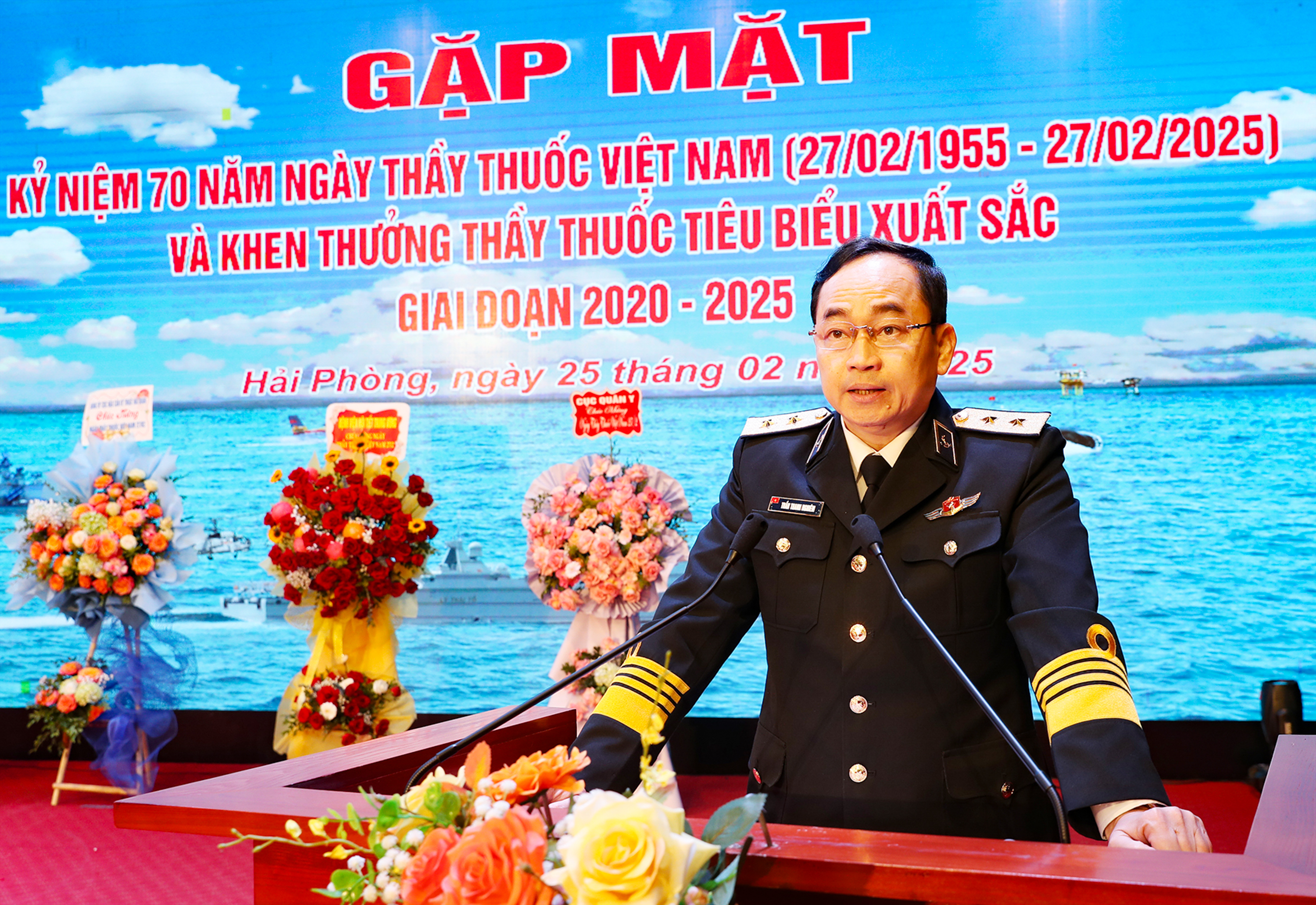 Nhân dịp kỷ niệm 70 năm Ngày thầy thuốc Việt Nam, thay mặt Đảng ủy, thủ trưởng Bộ Tư lệnh Quân chủng, một lần nữa, tôi nhiệt liệt biểu dương và chúc mừng thành tích của lực lượng quân y Hải quân đã đạt được trong những năm qua.