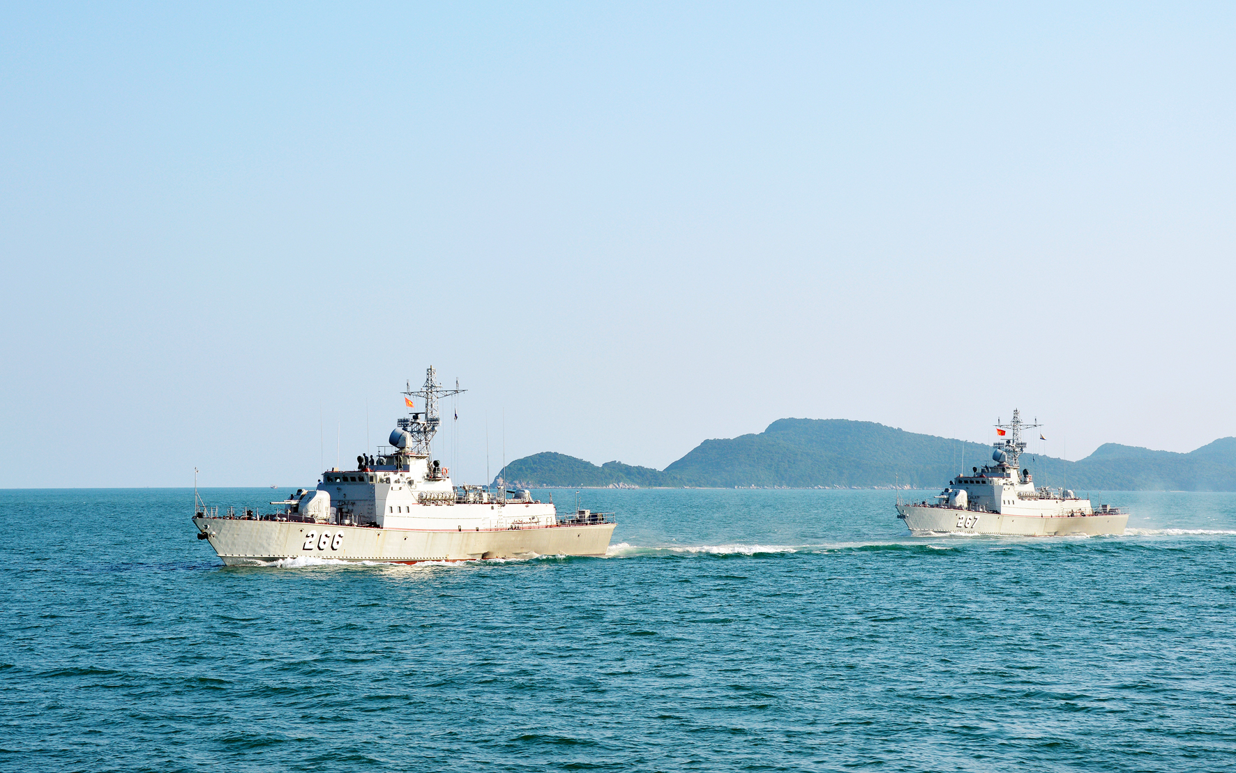 Biên đội tàu của Lữ đoàn 170, Vùng 1 làm nhiệm vụ trên biển. Ảnh: PV