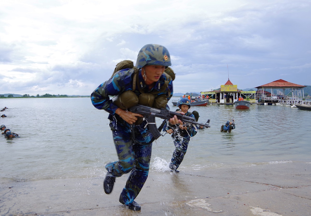 Chiến sĩ Lữ đoàn 147, Vùng 1 huấn luyện vượt sông đánh chiếm mục tiêu. Ảnh: PV