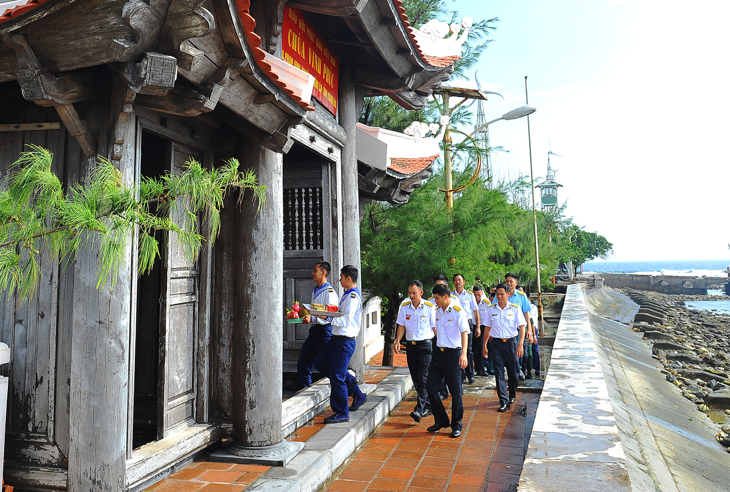 Cán bộ, chiến sĩ đi lễ chùa cầu an đầu năm, giống như phong tục ở đất liền