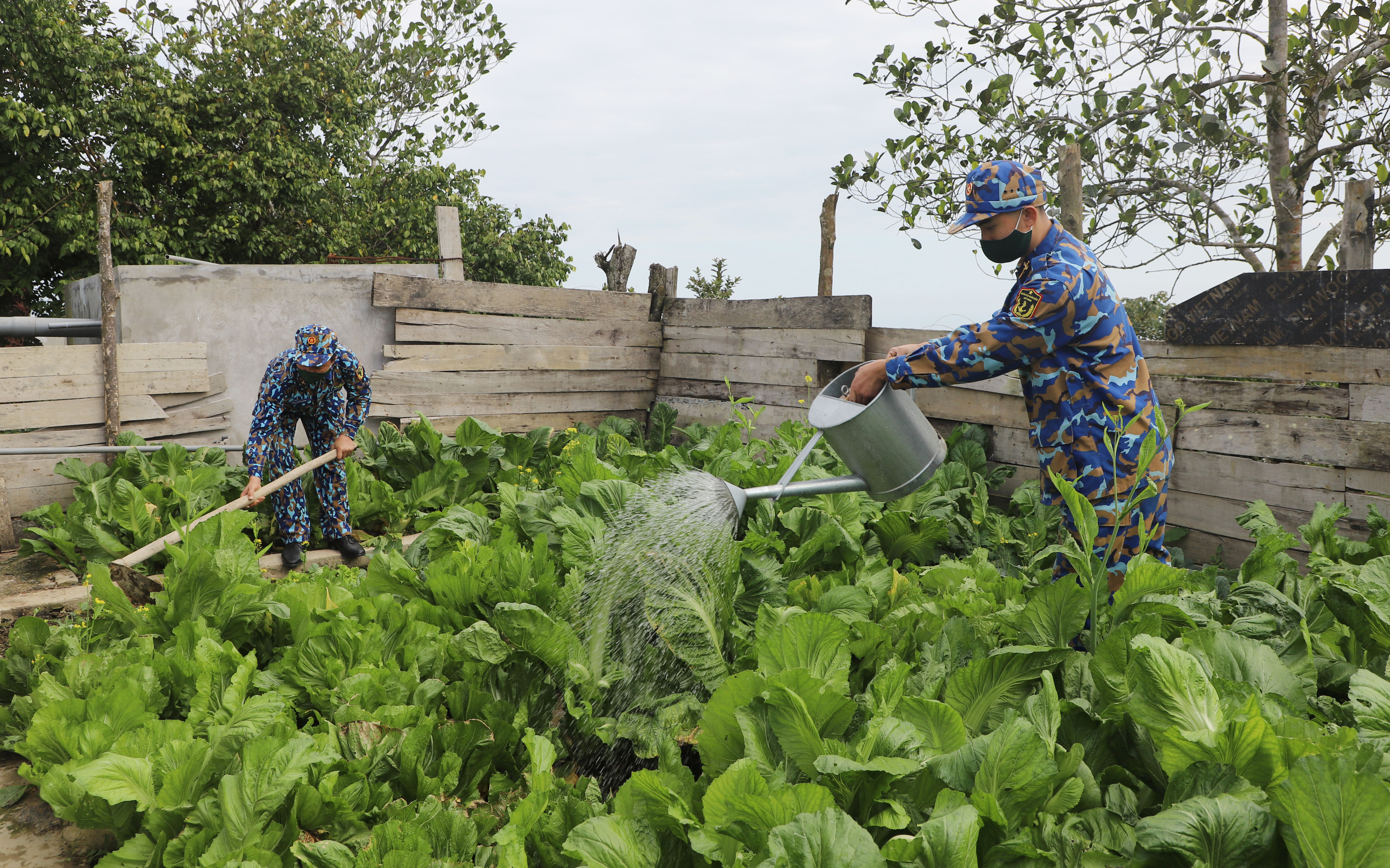 Chiến sĩ Trạm ra đa 485 chăm sóc rau xanh phục vụ Tết