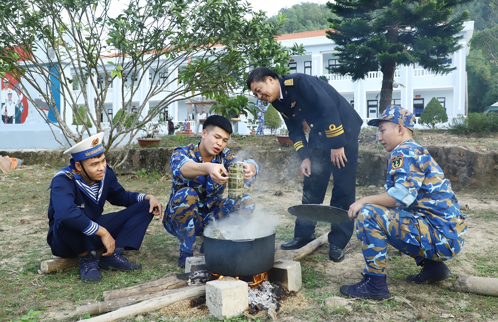 Niềm vui khi được nấu bánh chưng của cán bộ, chiến sĩ Trạm ra đa 485