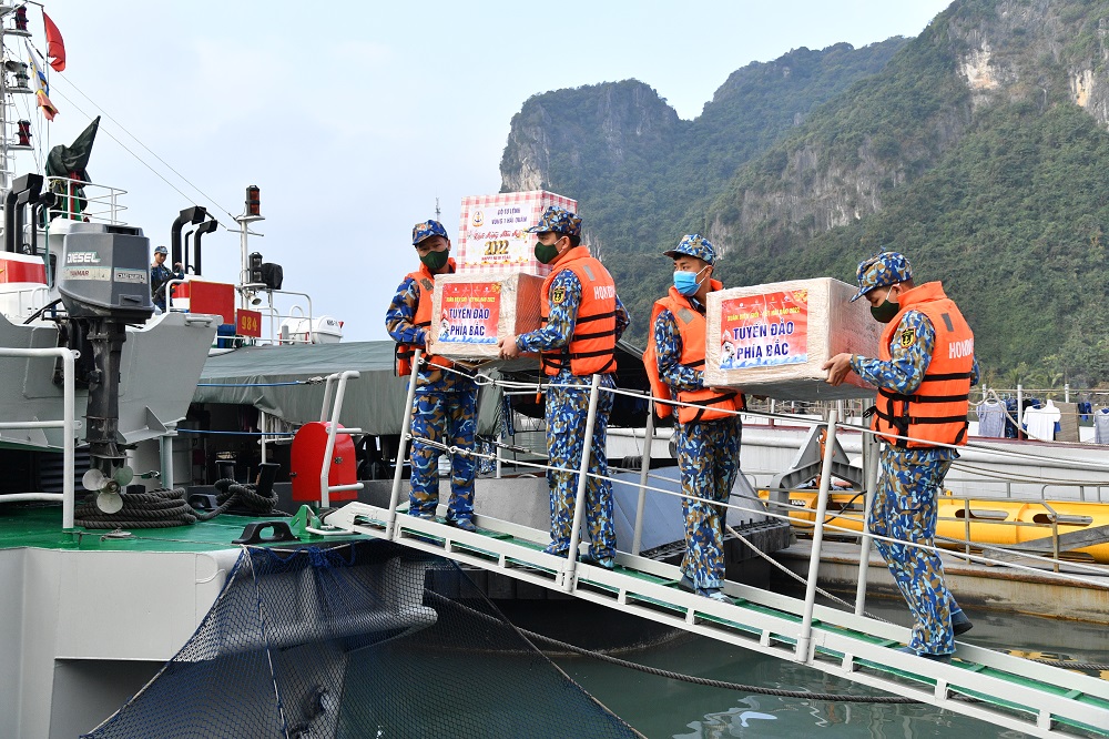 Đoàn xuất phát từ cảng Lữ đoàn 170, Vùng 1, mang theo quà của Quân chủng Hải quân, Trung ương Đoàn TNCS Hồ Chí Minh, Vùng 1 và các cơ quan dân chính đảng tặng cán bộ, chiến sĩ và nhân dân các đảo nhân dịp Tết Nguyên đán Nhâm Dần 2022 và kiểm tra công tác huấn luyện, SSCĐ của các trạm ra đa thuộc Tiểu đoàn 151, Vùng 1 Hải quân.