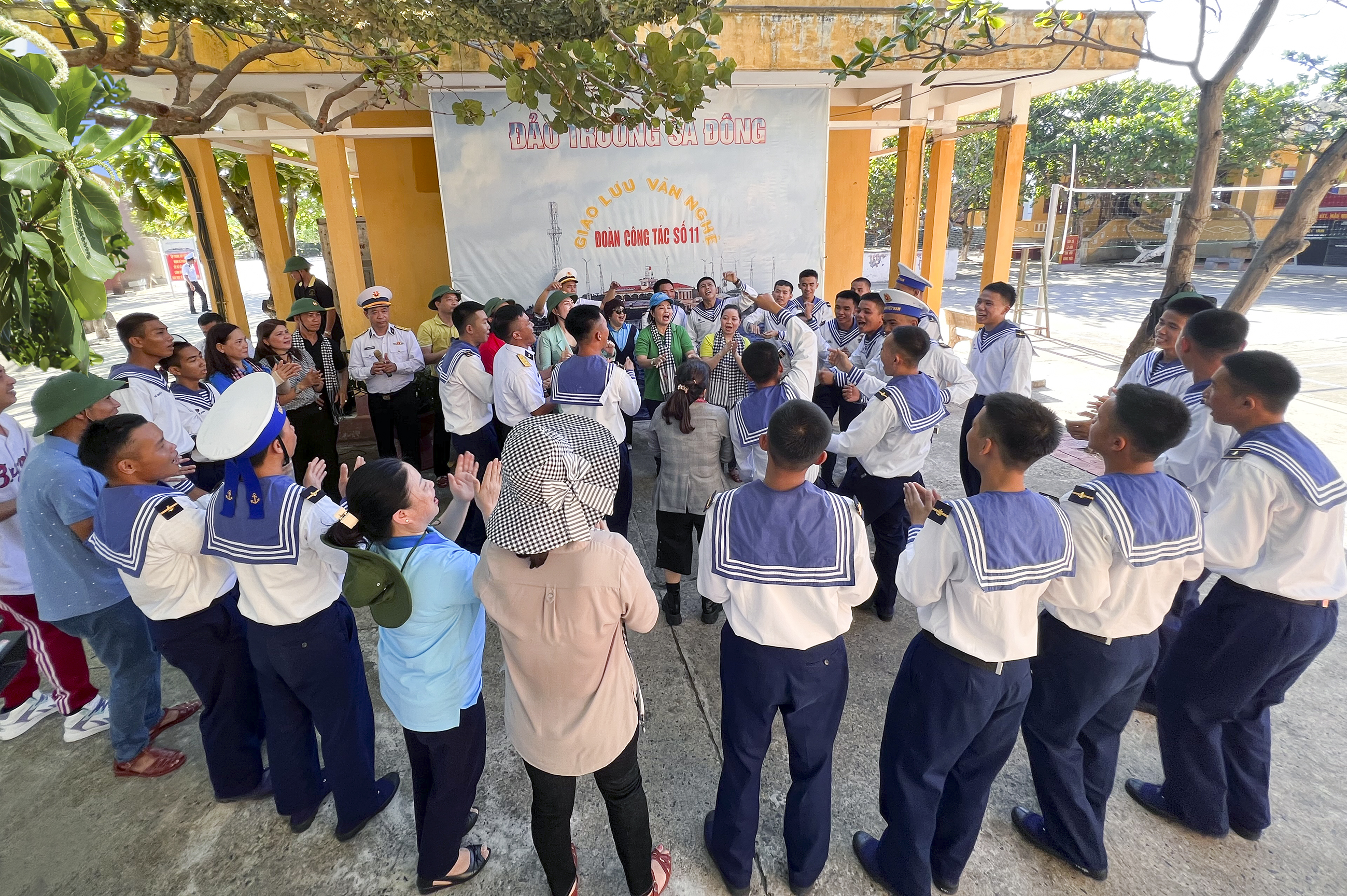 Cán bộ, nghệ sĩ Trung tâm Văn hóa nghệ thuật tỉnh Đồng Tháp biểu diễn phục vụ cán bộ, chiến sĩ đảo Trường Sa Đông