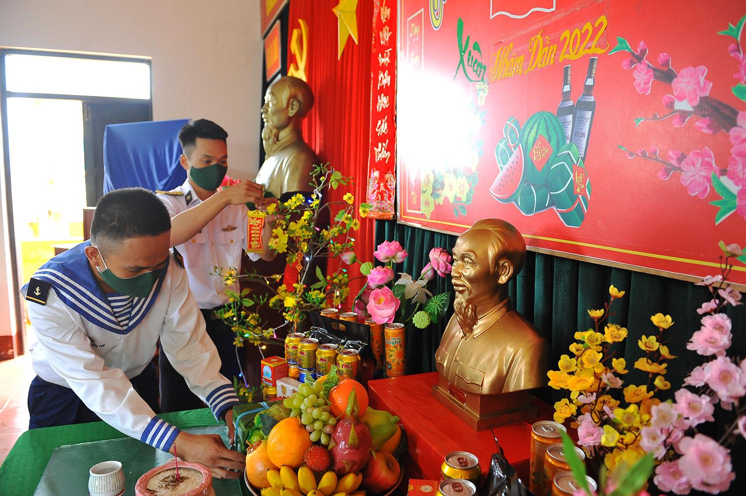 Cán bộ, chiến sĩ chuẩn bị mâm ngũ quả đón xuân mới