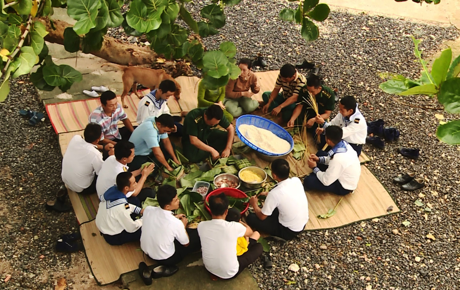 Quân và dân trên đảo Song Tử Tây gói bánh chưng ngày tết