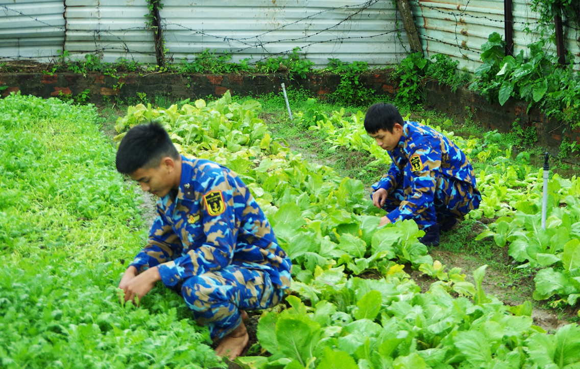 Cán bộ, chiến sĩ tích cực tăng gia rau xanh nâng cao chất lượng bữa ăn bộ đội