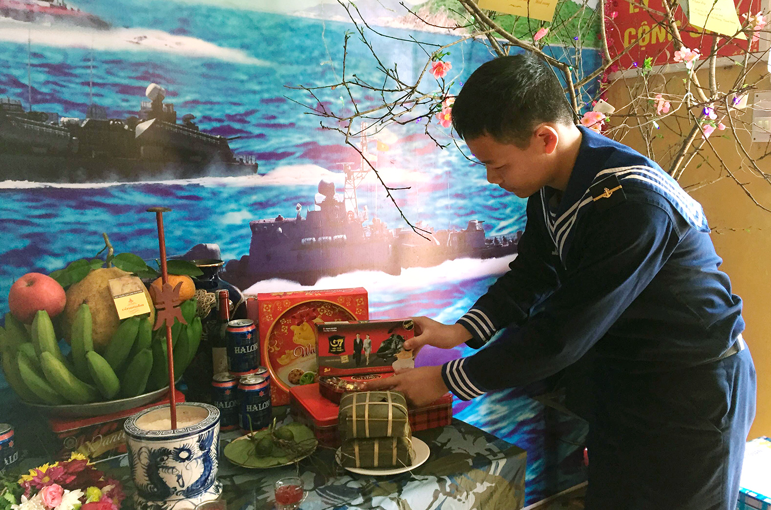 Chiến sĩ Trạm ra đa 490, Tiểu đoàn 151 trên đảo Bạch Long Vỹ chuẩn bị đón Xuân