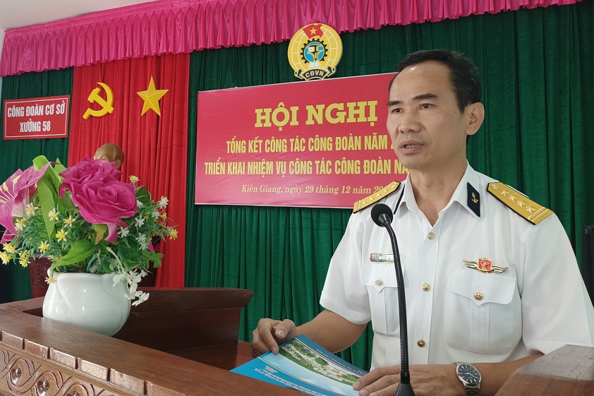 Chiều 29/12, tại TP. Phú Quốc, tỉnh Kiên Giang, Công đoàn cơ sở Xưởng 58, Phòng Kỹ thuật Vùng 5 Hải quân tổ chức Hội nghị tổng kết công tác công đoàn năm 2022. Đại tá Nguyễn Hữu Thoan, Phó Chính ủy Vùng dự và chỉ đạo.