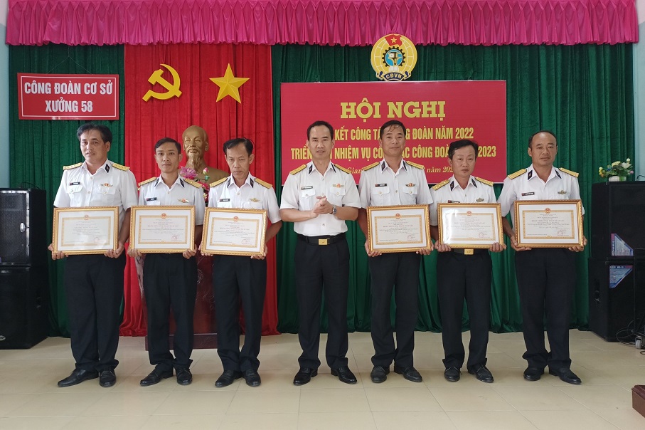 Dịp này, Vùng 5 đã tặng Giấy khen cho 1 tập thể và 6 cá nhân Công đoàn cơ sở Xưởng 58 có thành tích tiêu biểu trong năm 2022.