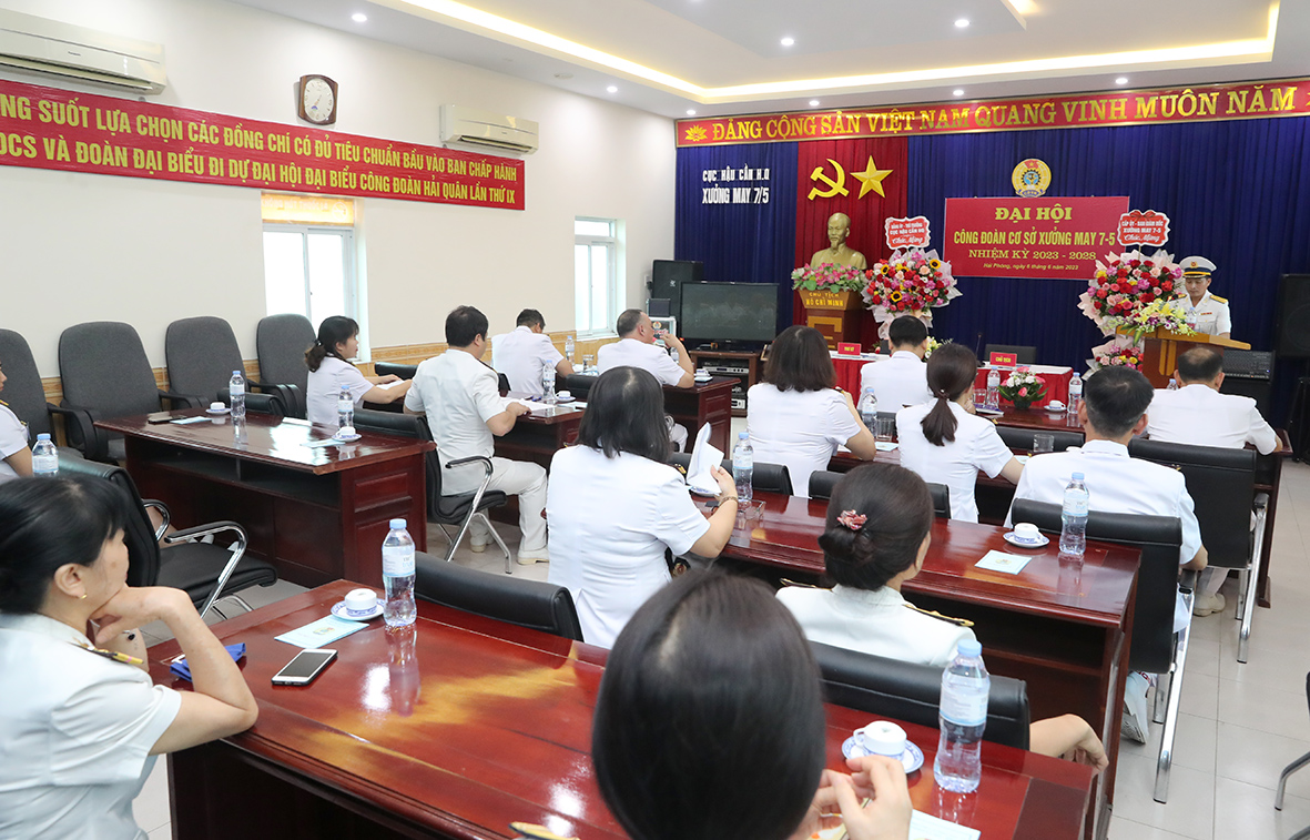 Sáng 6/6, tại Hải Phòng đã diễn ra Đại hội Công đoàn cơ sở Xưởng may 7-5, Cục Hậu cần Hải quân lần thứ VI, nhiệm kỳ 2023-2028. Đại tá Nguyễn Văn Lâm, Chủ nhiệm Chính trị Cục Hậu cần Hải quân dự và chỉ đạo. Tham dự đại hội có cấp ủy, Ban giám đốc và cán bộ, đoàn viên công đoàn (ĐVCĐ) Xưởng may 7-5.