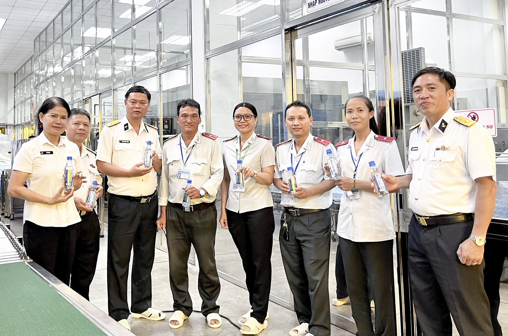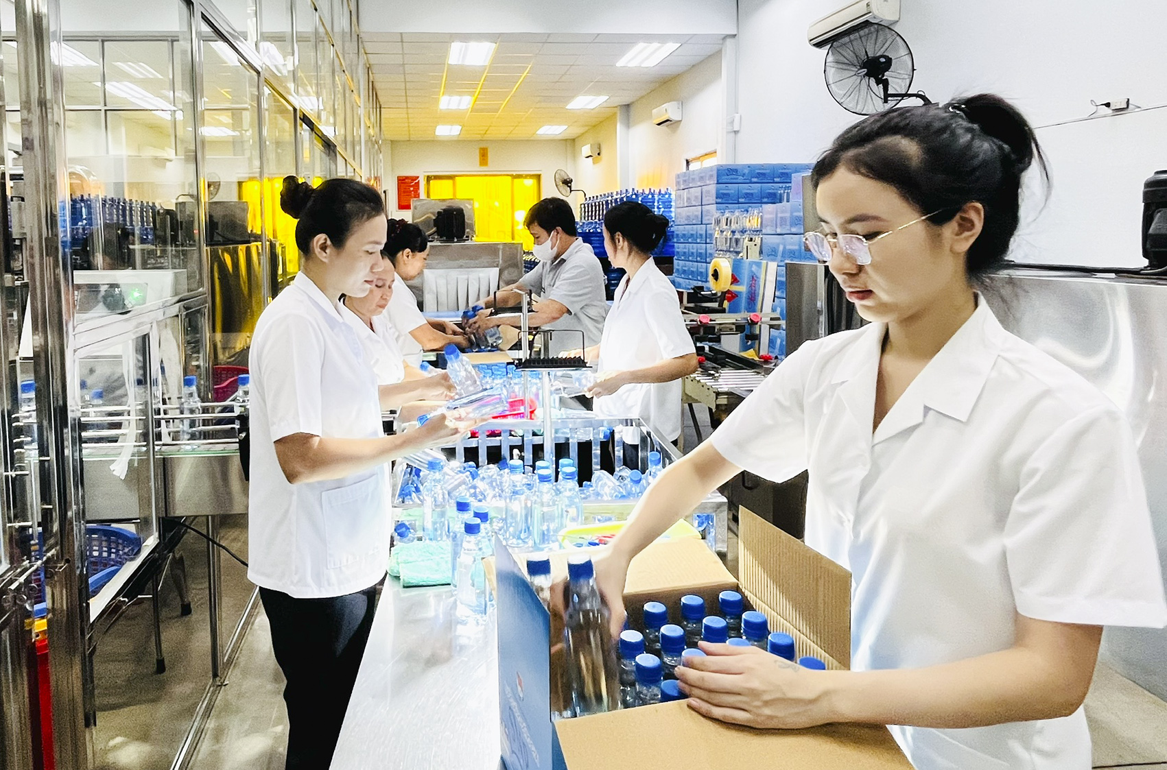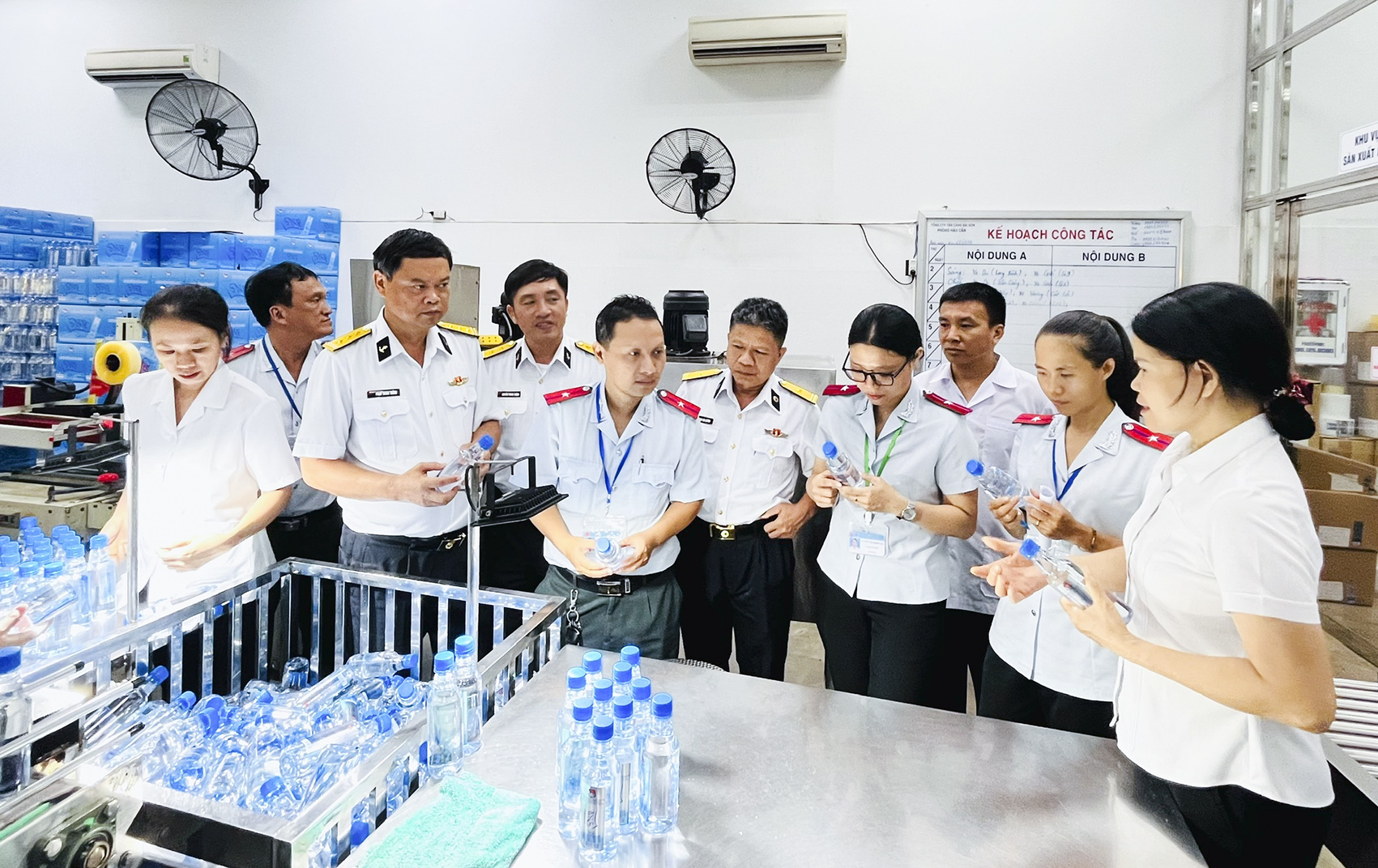 Đoàn công tác tiến hành kiểm tra chất lượng sản phẩm nước đóng chai tại xưởng